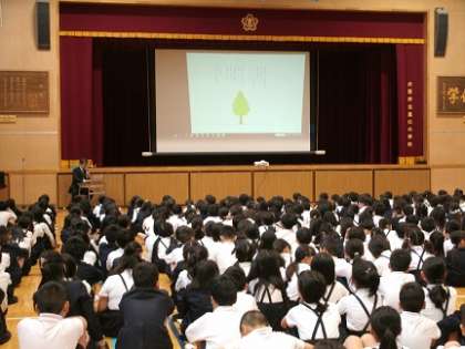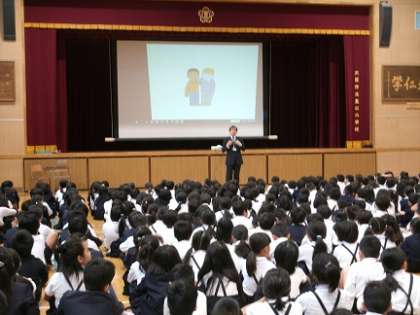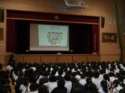 どの子も一生懸命、真剣に聞いていました。その後、学級で担任からいじめについての話やアンケートを実施しました。