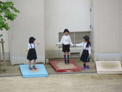 15分休みに、ドッヂボールや鉄棒、縄跳びなど元気よく遊んでいました。