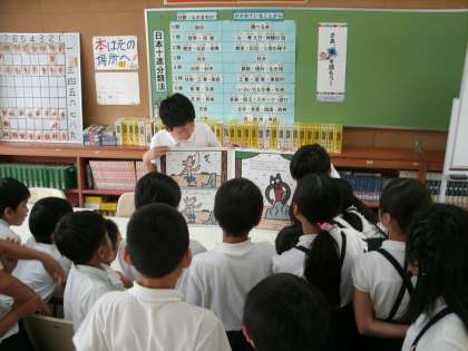 また、15分休憩では図書委員の児童が読み聞かせもしています。明日からは図書委員が各学級に図書室の使い方などの話をしに行きます。
