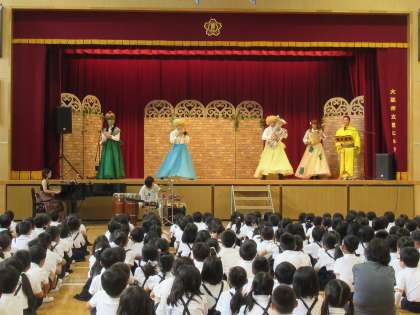 北区役所の協力もあり、ローゼンビート音楽研究所の皆さんに来ていただき1年生〜4年生が、音楽劇「シンデレラ」の芸術鑑賞会を講堂で行いました。