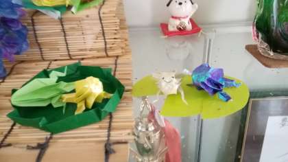 校長室前にカエルの折り紙が仲間入りしました。