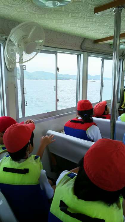 船内です。天気も良く、デッキにも出ることができました。
