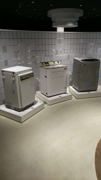 研修でパナソニックミュージアムで創業者の松下幸之助氏のことや電化製品の変容などなど学びました。写真は洗濯機とテレビの古い物、新しい物です。
