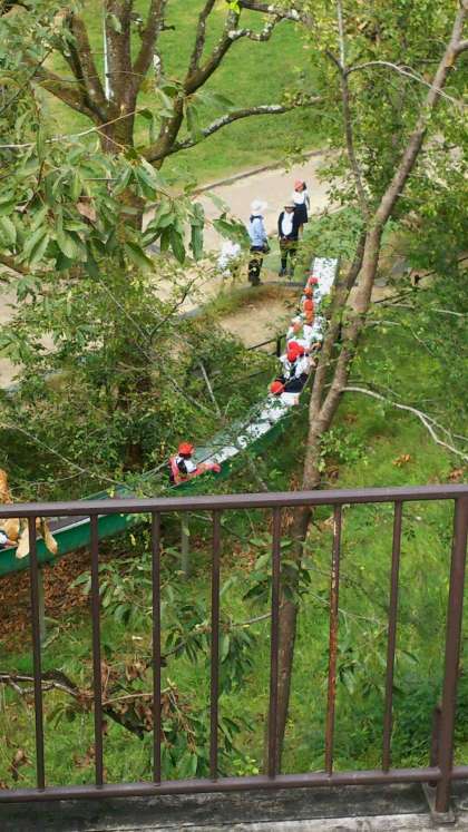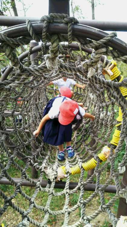 ローラー滑り台やアスレチックなどの遊具で遊びました。