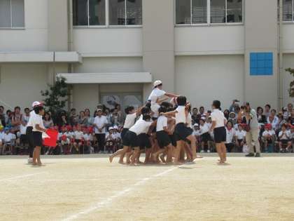 本日は、運動会の様子として「3年生 君たちはどう走るのか!?」「5・6年生 騎馬戦〜男の陣〜」「2年生 トライ!トライ!」「1年生 はしれ!ヤングスター!」をお知らせします。