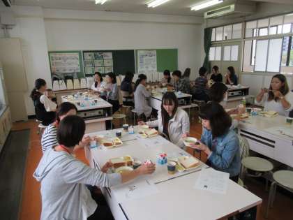 PTAの保健委員会主催で、給食試食会を行いました。配膳の準備もPTAの皆様でしていただきました。昨年との違いは牛乳瓶ではなく紙パックになったことです。皆さんおいしく食べました。