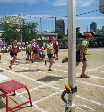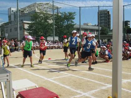 12番 6年生の「紅白対抗リレー2018〜つなげバトン〜」です。