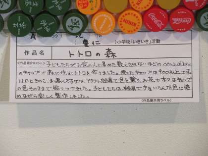 本校のいきいきは「トトロの森」をペットボトルのふたを利用し作成していました。各小学校のいきいきがそれぞれ工夫し作品展示しています。