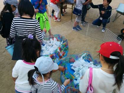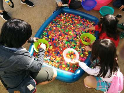 スーパーボールすくい、くじびき、おさかなつりの様子です。