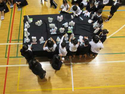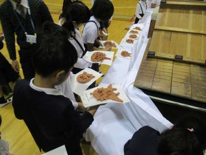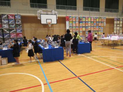 いよいよ明日から作品展です。昨日は平面作品を先生方が展示し、本日は子どもたちが自分の作った立体作品を展示しました(下の写真)。