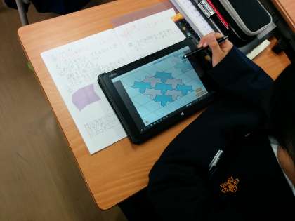5年生がタブレットを活用して図形の敷き詰めの学習をしました。