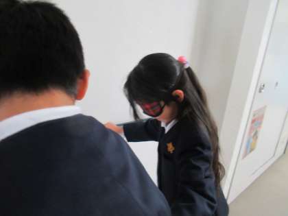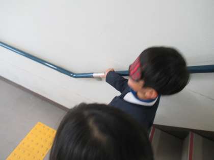 昨日は3−1、本日は3−2が授業の一環としてアイマスクをつけて体験学習をしました。二人一組で行いましたが、子どもたちは真剣に学習に望んでいました。