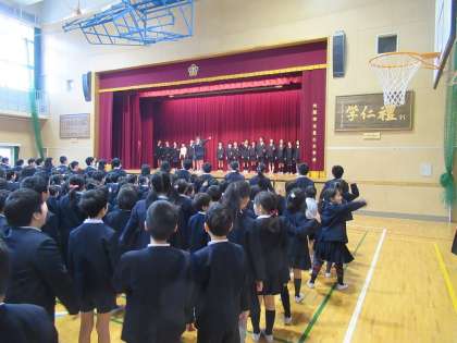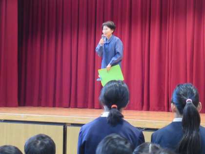 本日の児童集会は、インフルエンザのために延期していた給食集会をしました。