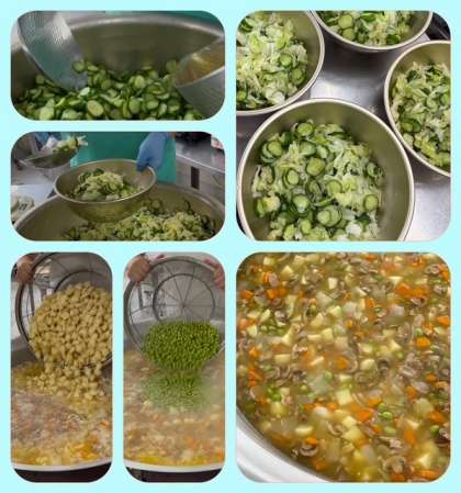 「キャベツときゅうりのサラダ」は、各々ボイルしたキャベツときゅうりに、砂糖、塩、ワインビネガー、綿実油で作ったドレッシングをかけ、あえます。