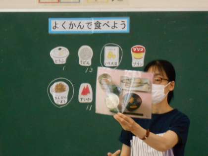 中津小学校の栄養教諭に来ていただき、授業をしてもらいました。