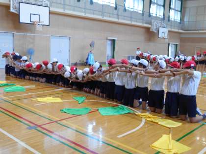 体型移動の場所を覚えたり、新しい動きの練習をしたり、演技も少しずつ完成に近づいています。本番が楽しみです。