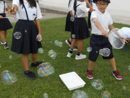 運動場では、サッカーやシャボン玉飛ばしをしていました。