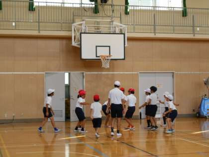 講堂では、バスケットボールをしていました。