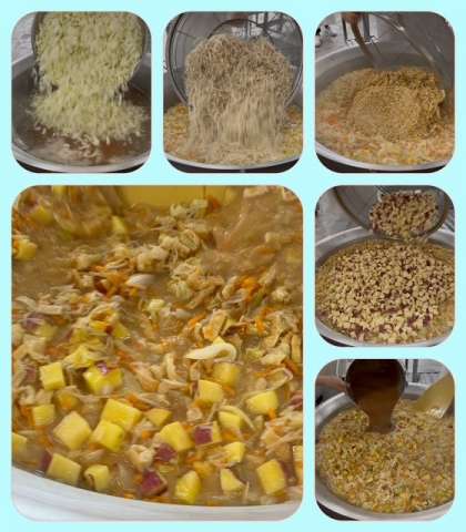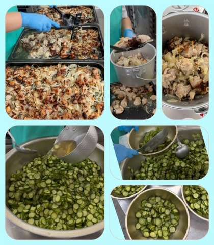 「鶏肉の塩こうじ焼き」は、鶏肉に塩こうじで下味をつけ、たまねぎを混ぜ合わせ、焼き物機で焼きます。