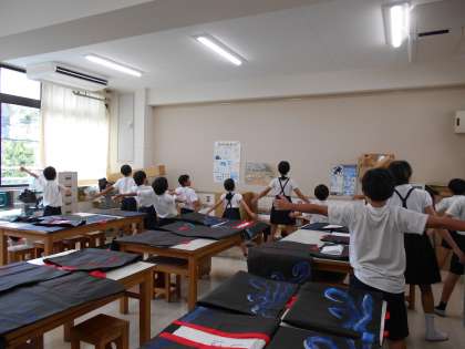 ラジオ体操の練習を、毎日昼休みに練習しています。