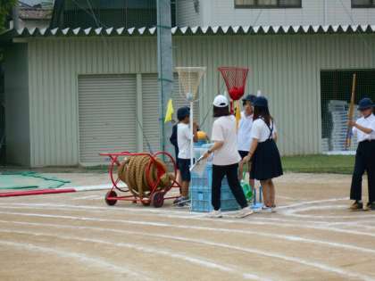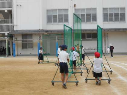 机・椅子を運んだり、防球ネットを移動したりしました。