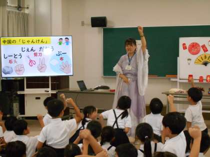 中国の文化について学びました。中国の学校のことや食事や挨拶の仕方などを知ることができました。