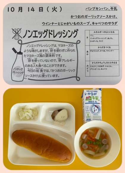 「かつおのガーリックソースかけ」は、焼き物機で焼いたかつおに、にんにく、塩、こしょう(白)、ノンエッグドレッシングで作ったタレを配缶時にかけます。