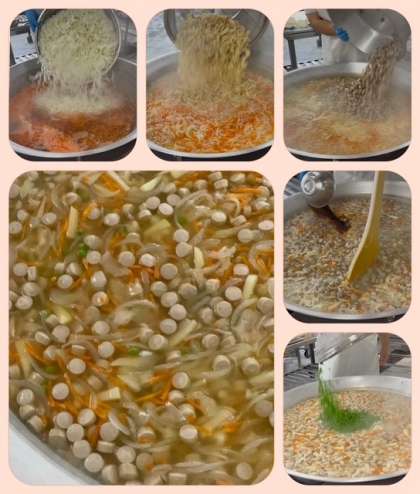 「ウインナーとじゃがいものスープ」は、ウインナー、じゃがいも、たまねぎ、にんじん、彩りにグリンピースを使用し、塩、こしょう、薄口しょうゆ、チキンブイヨンで味つけします。