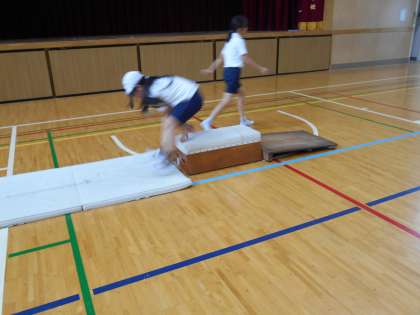 自分のめあてにあった場を選び、開脚跳びの練習をしていました。