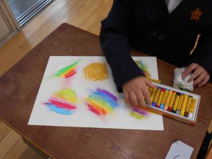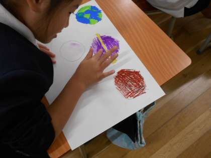 星を描いたり、アルミ箔で宇宙飛行士を作っているところです。