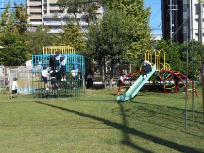 休み時間には、たくさんの子どもたちが元気に運動場で遊んでいます。