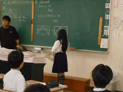 長方形の半分になることをみつけて、そこから公式を考えていました。
