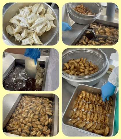 「あげギョーザ」は、冷凍のまま170度のなたね油で揚げます。1人2個ずつです。