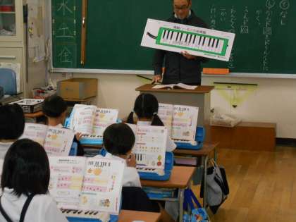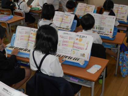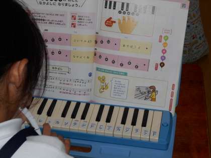 「なかよし」を鍵盤ハーモニカでふく練習をしています。