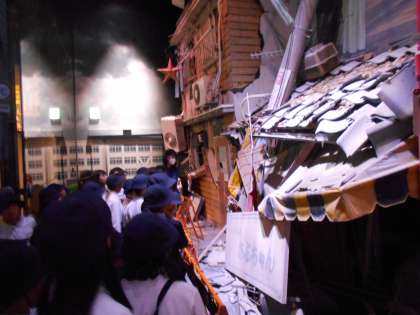 実際に被害があったところをイメージした建物の間を通ることもできました。