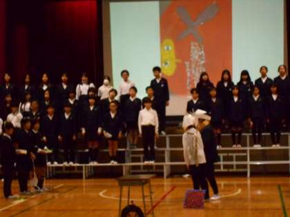 5年生は、「注文の多い料理店」を歌と群読で発表します。