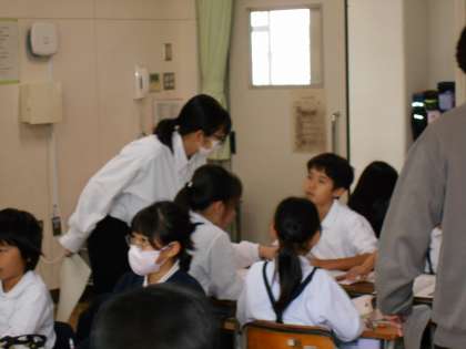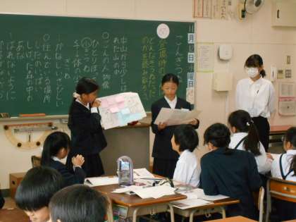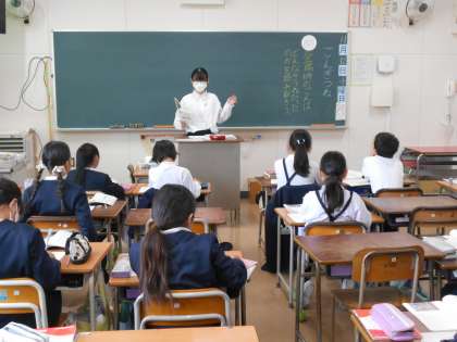 4年生の学級で、教育実習生が「ごんぎつね」の授業をしました。