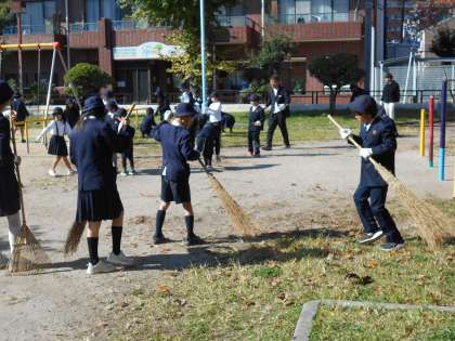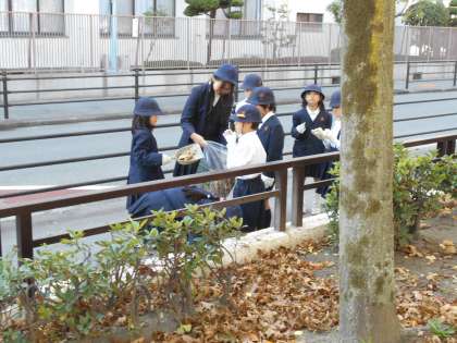 班ごとに決められた場所のごみや落ち葉を拾いました。