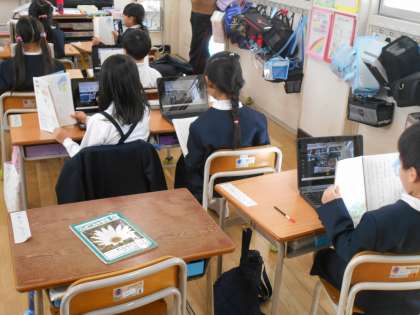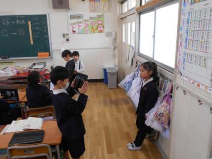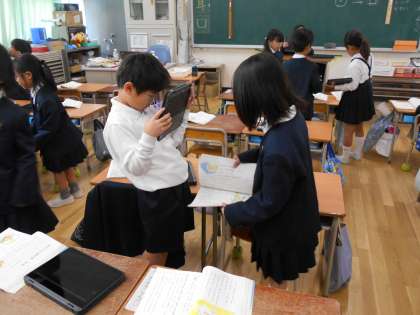学習する前と後では、音読がどのように変わるかを比べるために、音読を動画で撮っています。どんなふうにかわるかな。