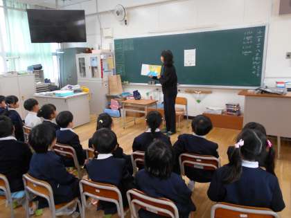 お話のろうそくに火が灯り、お話し会のはじまり、はじまり。子ども達はすぐにお話の世界に浸り、お話を楽しんでいるようでした。お話しをしてもらった後に本の紹介もありました。これからもたくさん本の世界を楽しんでほしいと思います。高学年は12月の予定です。こちらも楽しみです。