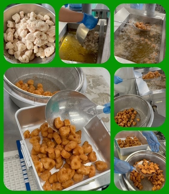 「れんこんフライ」は、冷凍のまま170度のなたね油で揚げます。