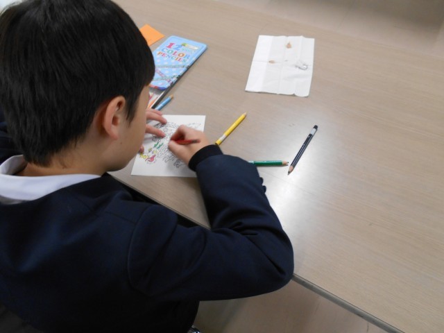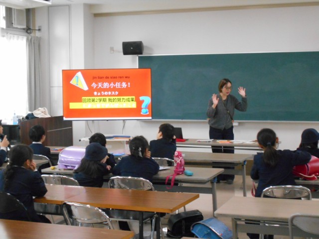 今日は、2学期がんばったことを、カードに中国語で書きました。