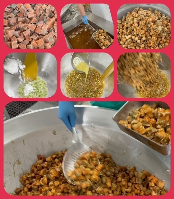 「さけの和風マリネソースかけ」は、なたね油でさけを揚げ、白ねぎ、しょうが汁、砂糖、白こしょう、米酢、薄口しょうゆ、綿実油等で作ったソースを、配缶時にさけにかけます。