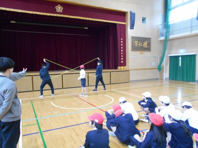 「ファットマンクルー」というグループのメンバーが来てくださり、ダブルダッチの授業をしてもらいました。