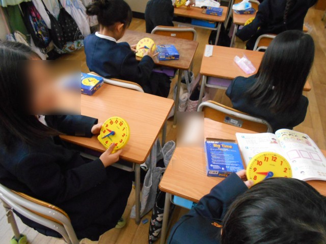 時計の針の合わせ方を学習しています。