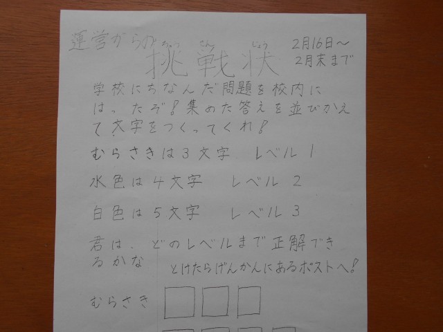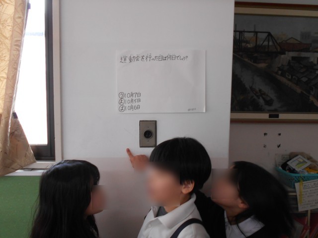 運営委員会の人たちが、学校にちなんだ問題を校舎内にはっています。