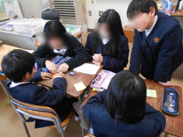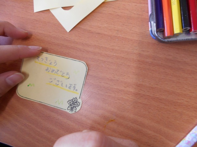 「卒業生をお祝いする会」でわたすカードを、たてわり班で行いました。