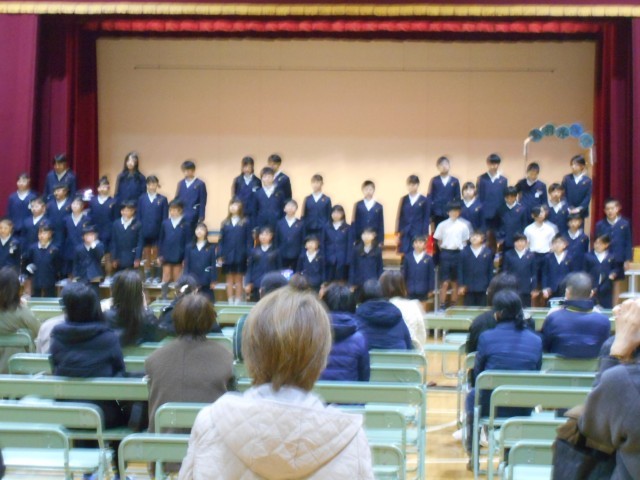 最後に全員で合唱し、昨日作ったクッキーを保護者の方に渡しました。
