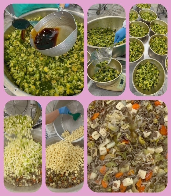 「ブロッコリーのしょうがづけ」は、焼き物機で蒸したブロッコリーに、しょうが汁、砂糖、濃口しょうゆで作った調味液につけ、味を含ませます。