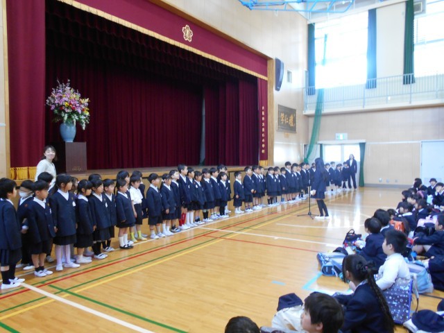 そのあと、1年生との対面式を行いました。6年生の児童からあいさつと、1年生全員で、「よろしくお願いします」とあいさつがありました。